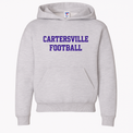 Stay warm, stay proud, and rep the Canes in this classic Cartersville Football hoodie. Designed with bold purple block lettering on a soft ash-gray backdrop, this hoodie is built for Friday night lights, crisp fall mornings, and everything in between. The roomy front pocket and cozy hood make it a go-to for players, parents, and fans alike.